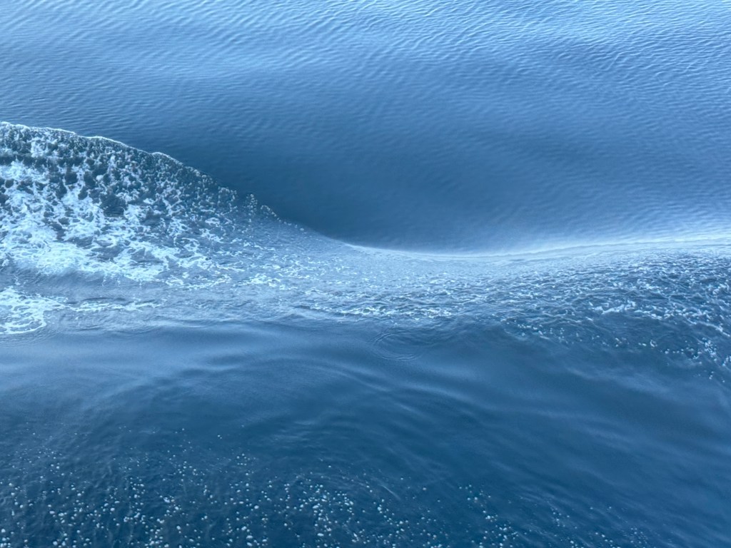 Cruising around PEI into the St. Lawrence Seaway, the Atlantic was remarkably calm in the wake of the Holland America ship Zuiderdam.
