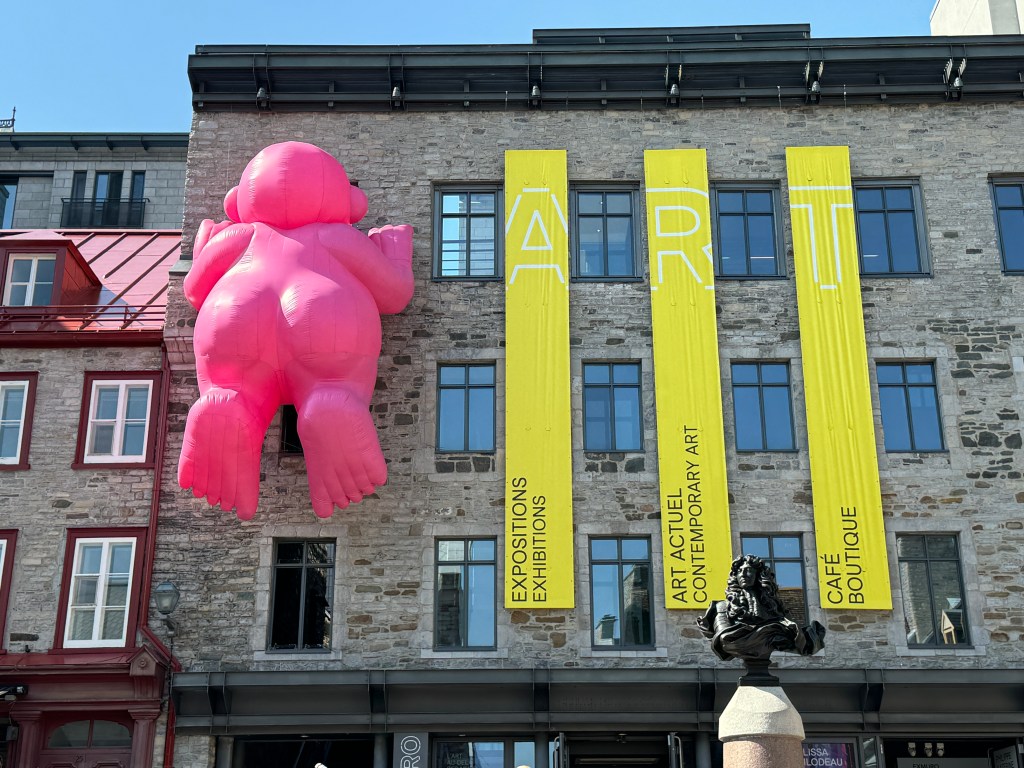 Arriving in Quebec City, we were confronted with several of these giant pink balloon guys peering into and over the Modern Art Museum. After encountering these guys, It was hard to “unsee” them!
