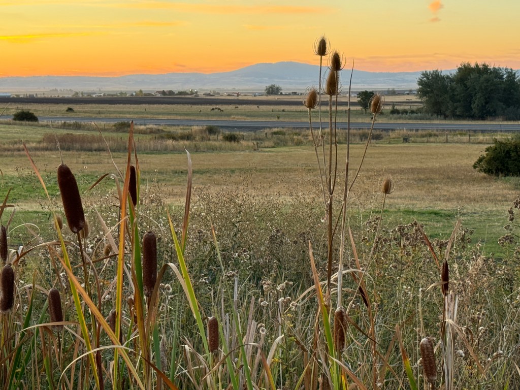 The first day of our National Park trip, we only went as far as Grangeville, Idaho. Here’s the view of Kamiah Prairie at sunset from our campground.