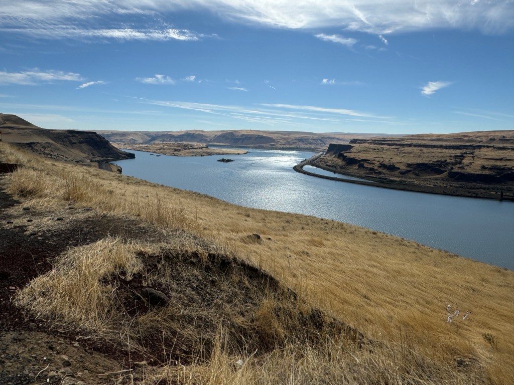 Driving up the Columbia River, the wide water mirrors the sky near the site of Celilo Falls, once the primary fishing and trading location on the entire river. Now just a quiet lake behind John Day Dam.