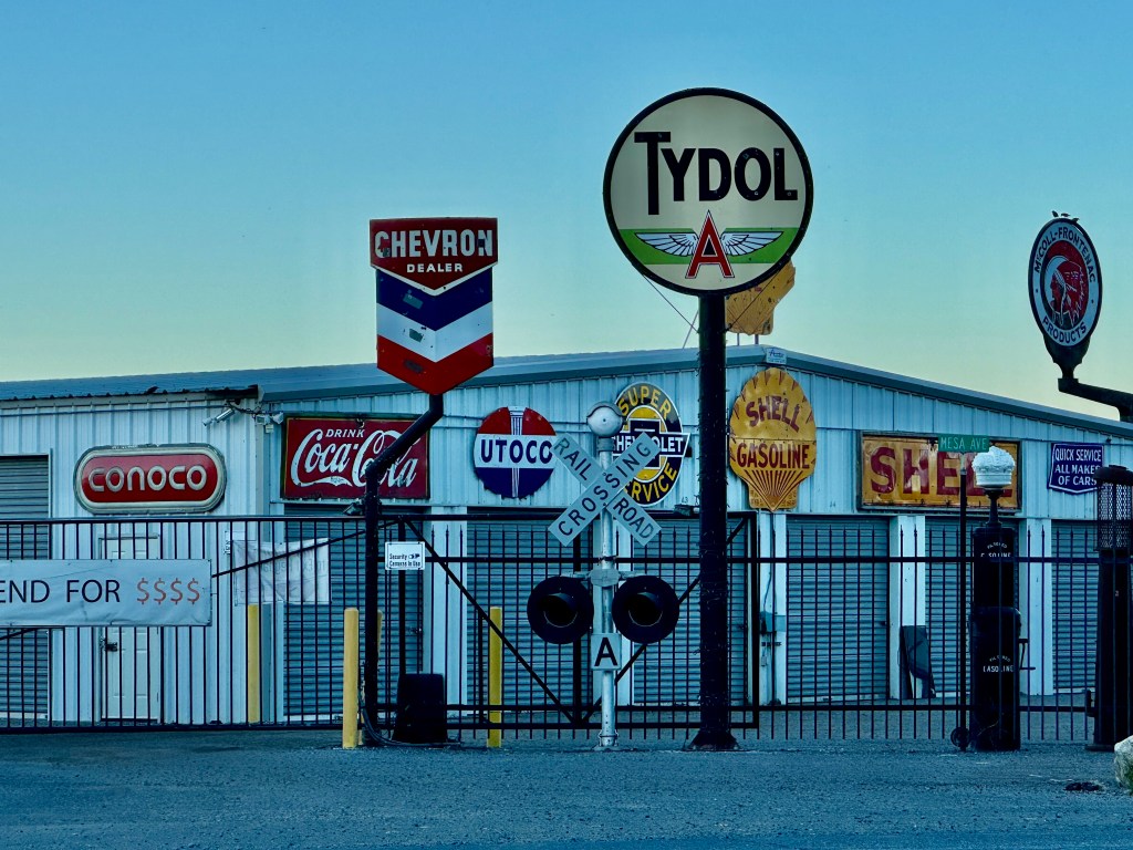 Right next to our campground in Provo, Utah was a storage facility that featured dozens of old automotive and advertising signs.