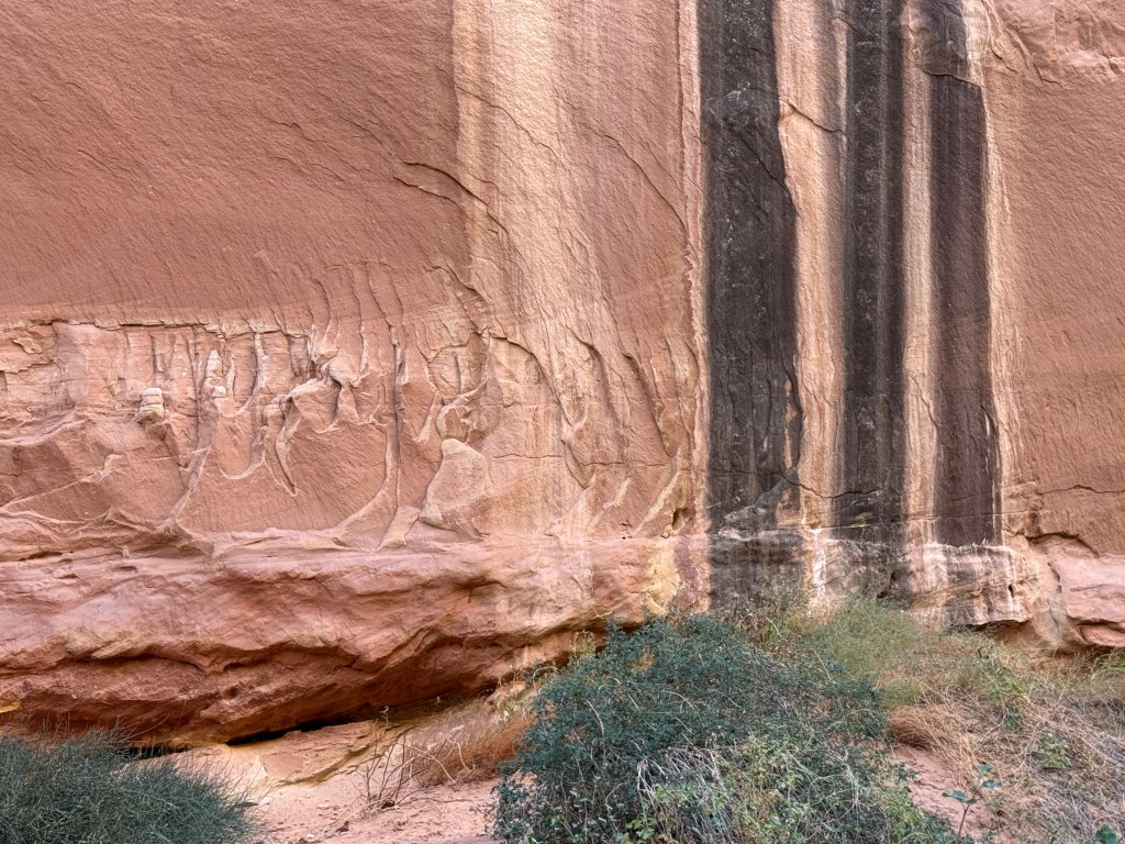 With all of the horizontal stripes of rock around Capitol Reef, you can also find vertical stripes of weathering where water has dripped down the cliffs in Grand Wash.