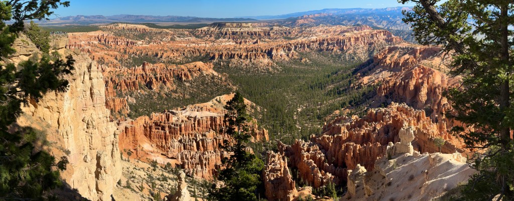 The bright spires of Bryce Canyon seem to go on forever. But this pink layer of rock is the top of the “Grand Staircase” of sedimentary rock layers that descend all the way to the bottom of the Grand Canyon.