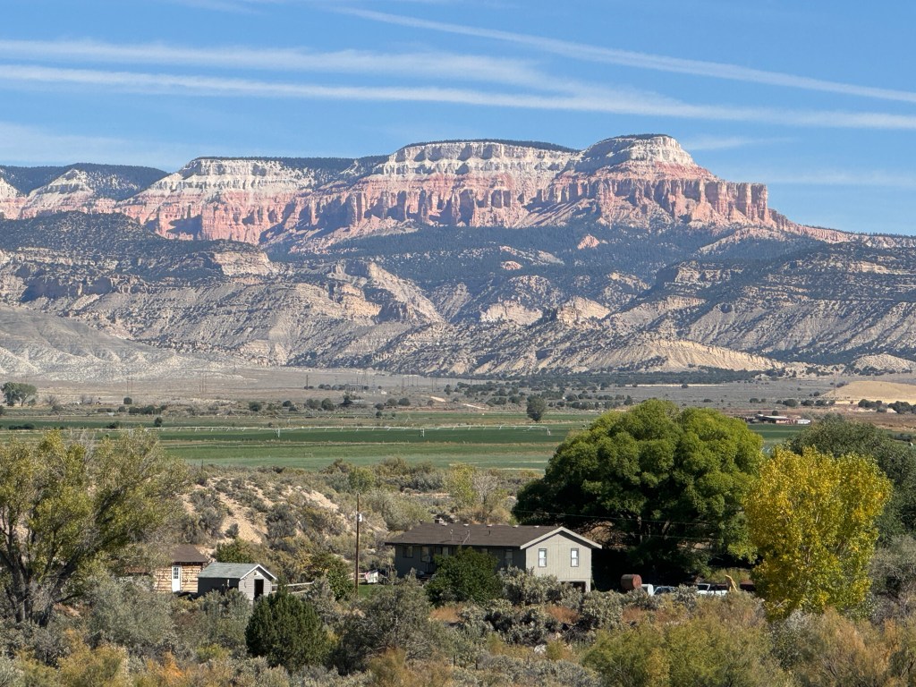 Looking across this valley near Kodachrome Basin state park, you can see the pink and white cliffs that mark the edge of the Grand Staircase-Escalante national monument.
