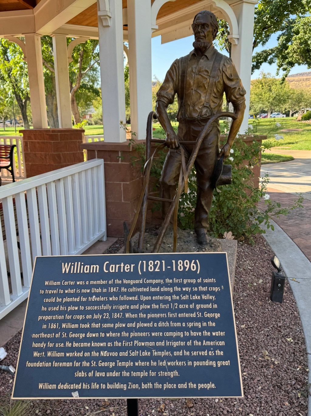 One of the sculptures in St. George’s Art District is of William Carter, the “first plowman and irrigator of the American West.” No relation, but the man knew how to use a plow to great effect on the frontier.