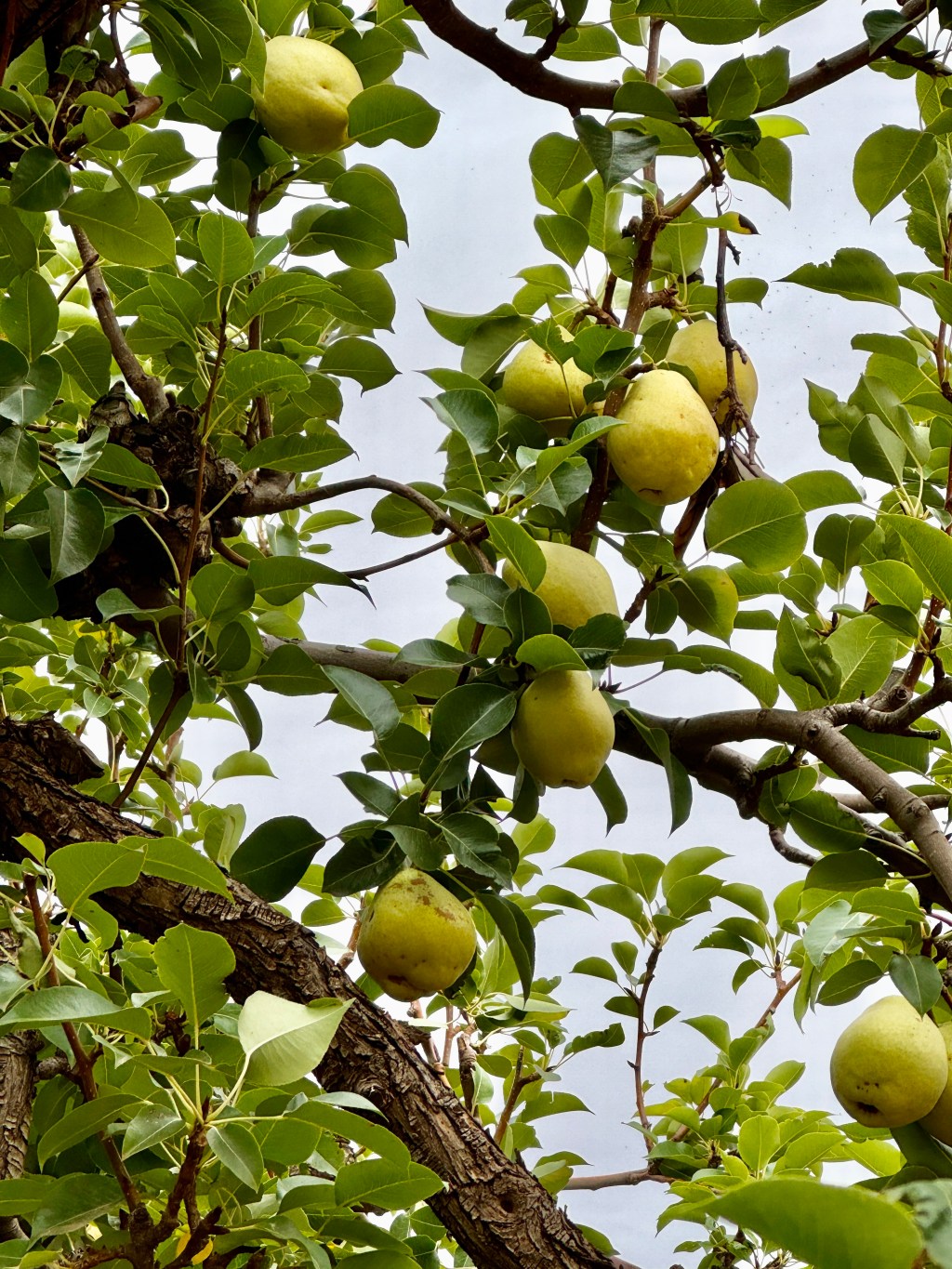 A pear tree in the orchard at Lonely Dell near Lee’s Ferry is loaded with fruit. We picked a couple of pears (using a wire basket on a pole) to enjoy later once they finish ripening.