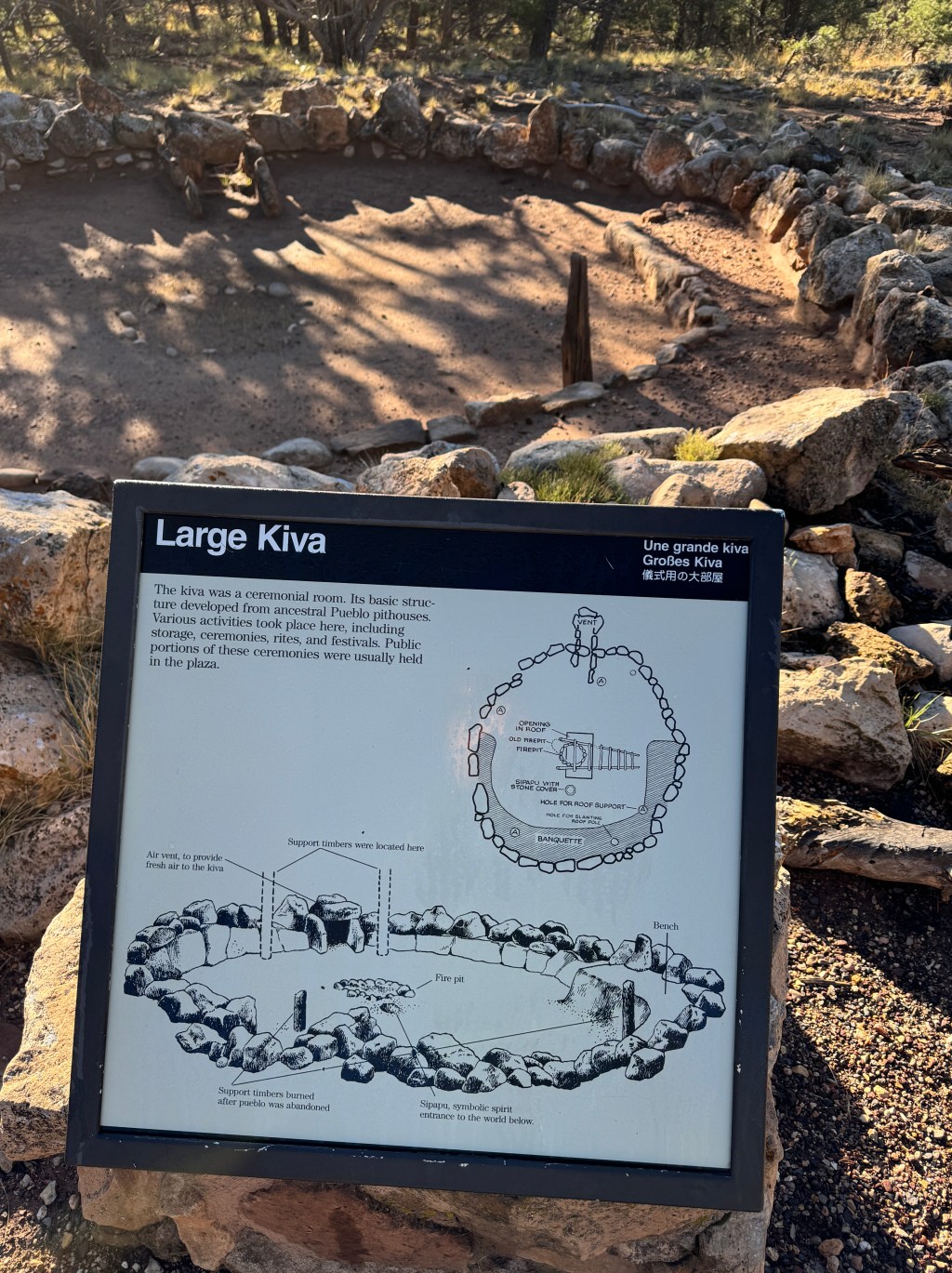 The ruins of a Pueblo “kiva” along the South Rim helps visualize this structure that was used for storage, ceremonies, and festivals about 900 years ago.