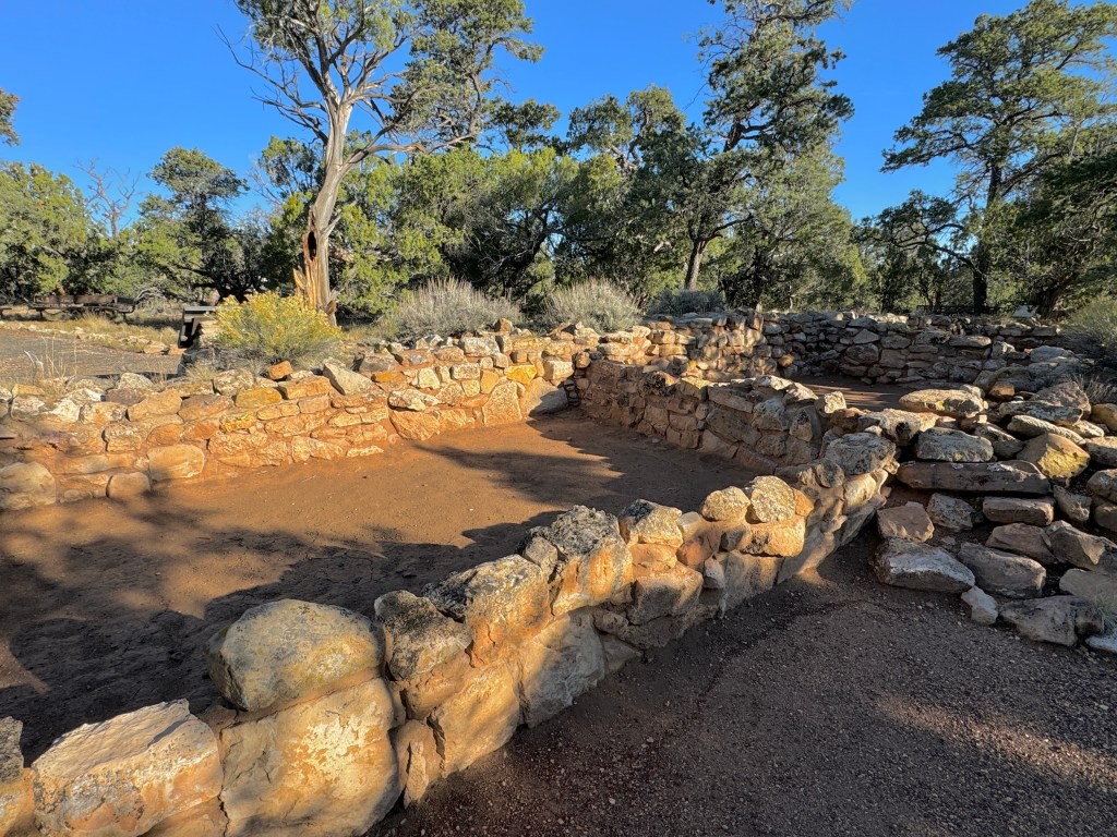 900 years ago, the native residents along the South Rim built a stone structure for living and working in. We walked around the ruins that still show the rooms and some of the wooden poles they built into their home.