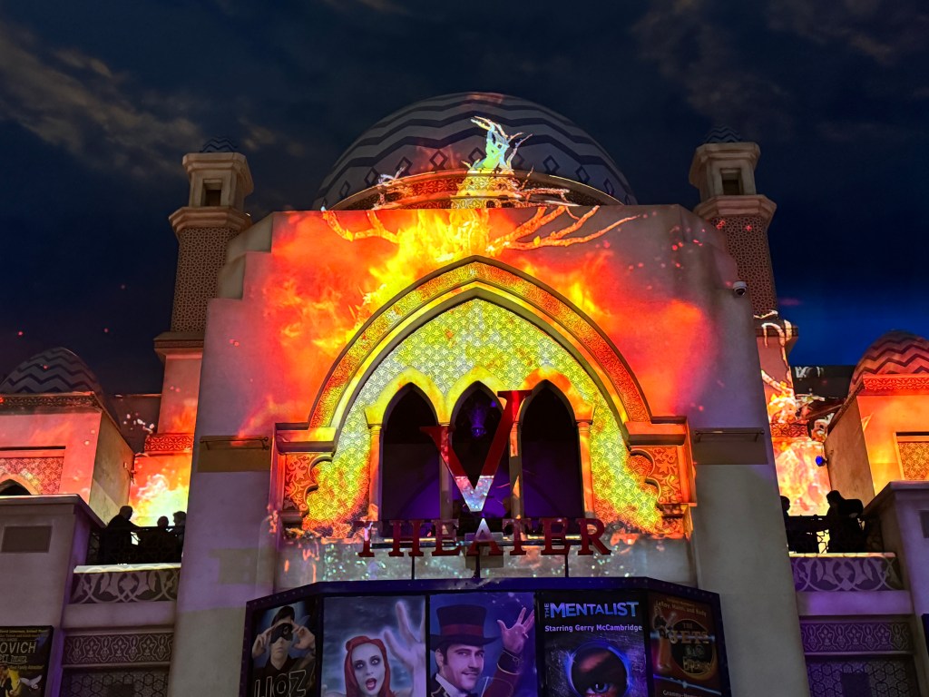 Since it’s Vegas, every now and then the facade of the V Theater lights up with flames and dramatic music. Just to attract your attention. It sure got mine.