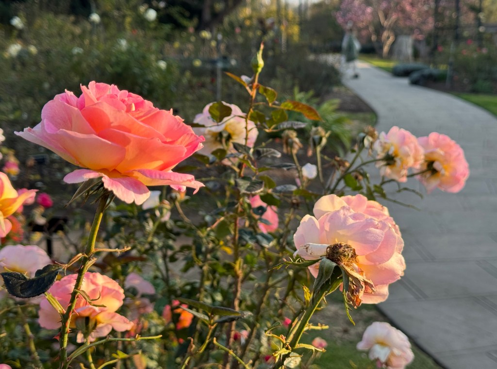 ’Julie Andrews’ blooms reach out for the afternoon light in the Huntington’s Rose Garden.