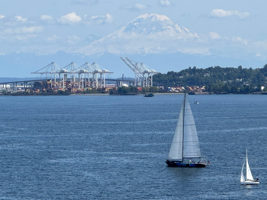 Cruising out of the harbor, we could see sailboats, the port’s docks, and Mt. Rainier rising above it all.