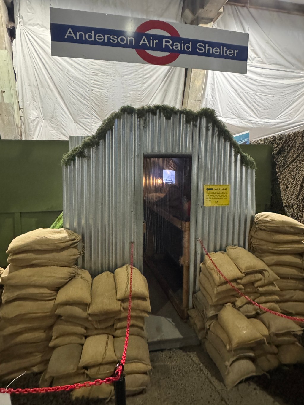 An exhibit on WWII in the Tillamook Air Museum included this Anderson Air Raid Shelter, one of thousands that were made in England before and during the war. The size of a small shed, it had room for 4 bunks and not much else, but many families survived the Blitz in one of these.