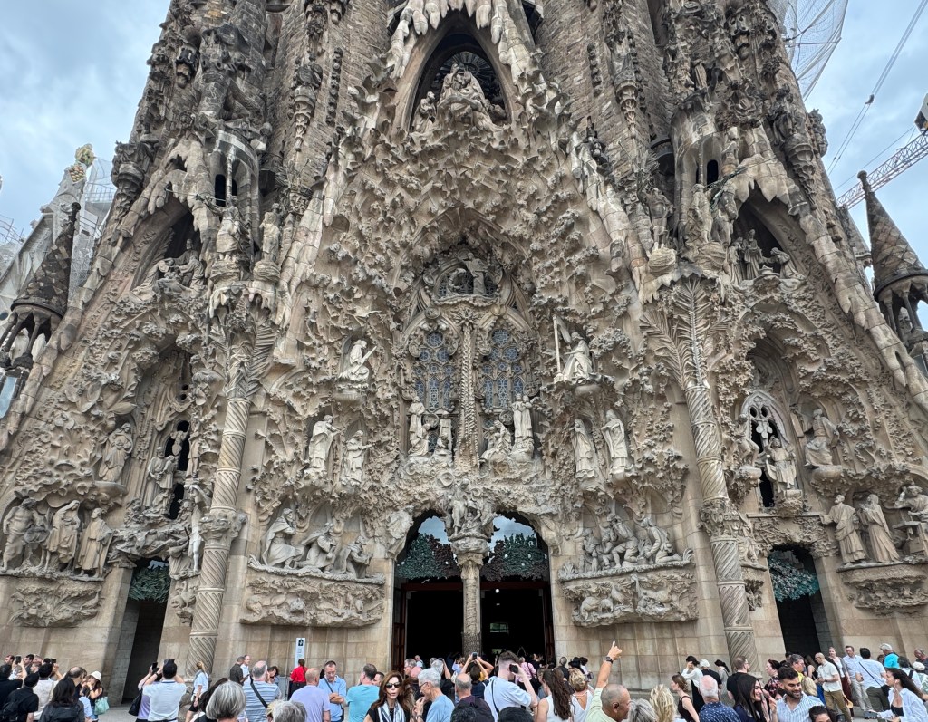 Our tour of Sagrada Familia (Holy Family) began on the right side entrance that celebrates the birth of Christ with a whirl of statues of angels, wise men and shepherds around Joseph, Mary and Jesus.
