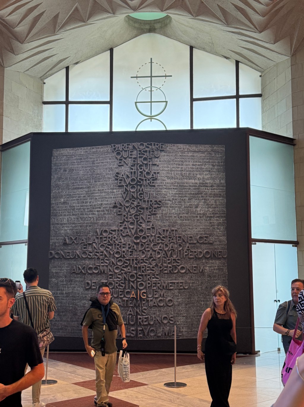 The main doors to the basilica, although no one can enter through them yet, have the Lord’s Prayer engraved on them in Catalan and 50 other languages.