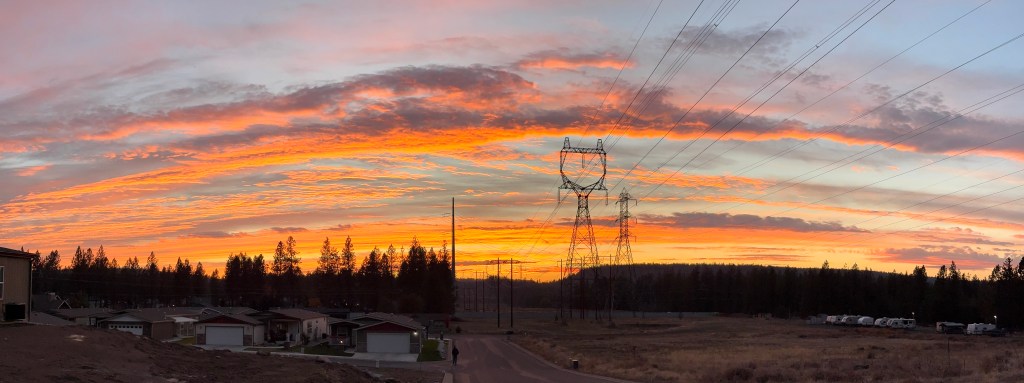 This spectacular sunset in late October arced incandescent oranges and reds across the western sky near our home in Nine Mile Falls. The glory of God displayed in the heavens!