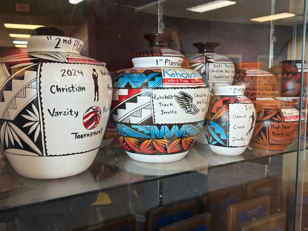 Rehoboth hosts athletic tournaments against other schools from Navajo country and across New Mexico. In keeping with the local aesthetic, the winners receive a painted pot instead of a standard wood and metal trophy.