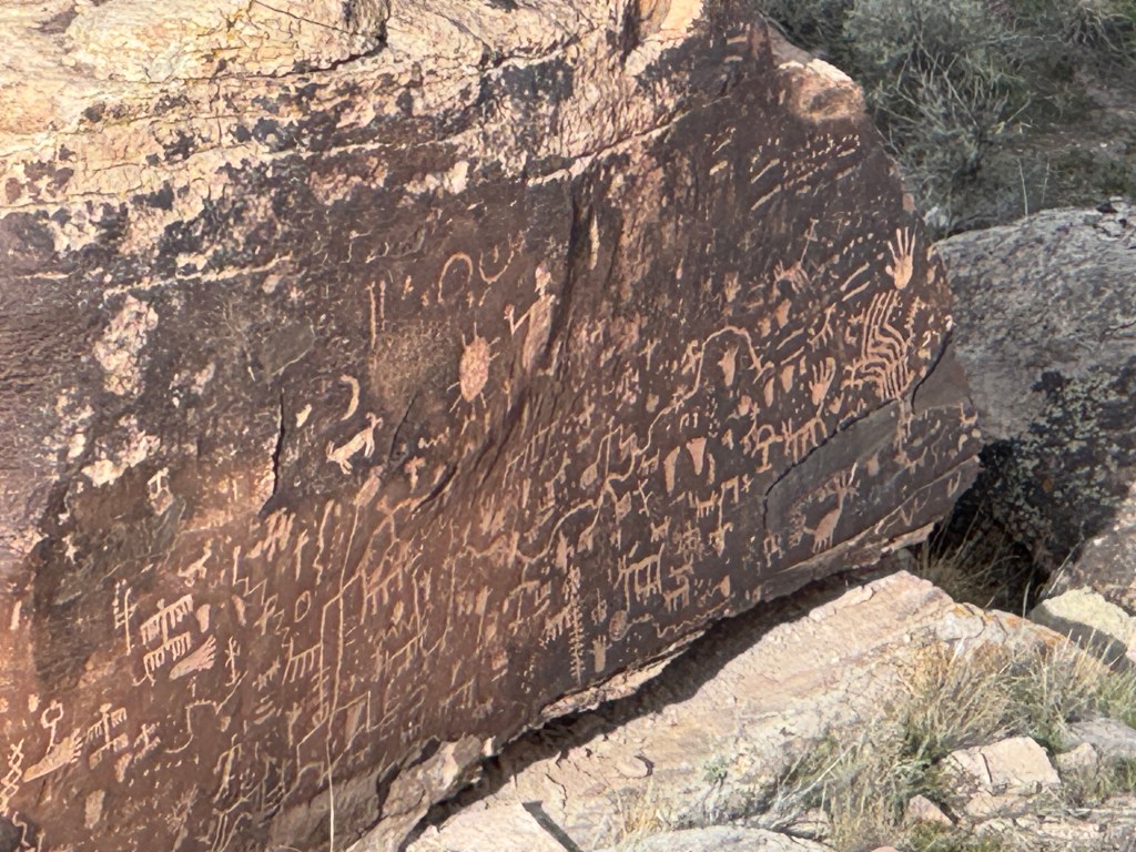 Halfway through Petrified Forest NP is an overlook where you can see Newspaper Rock, covered with over 650 petroglyphs carved into the rock by native residents and visitors, some over 2,000 years ago!